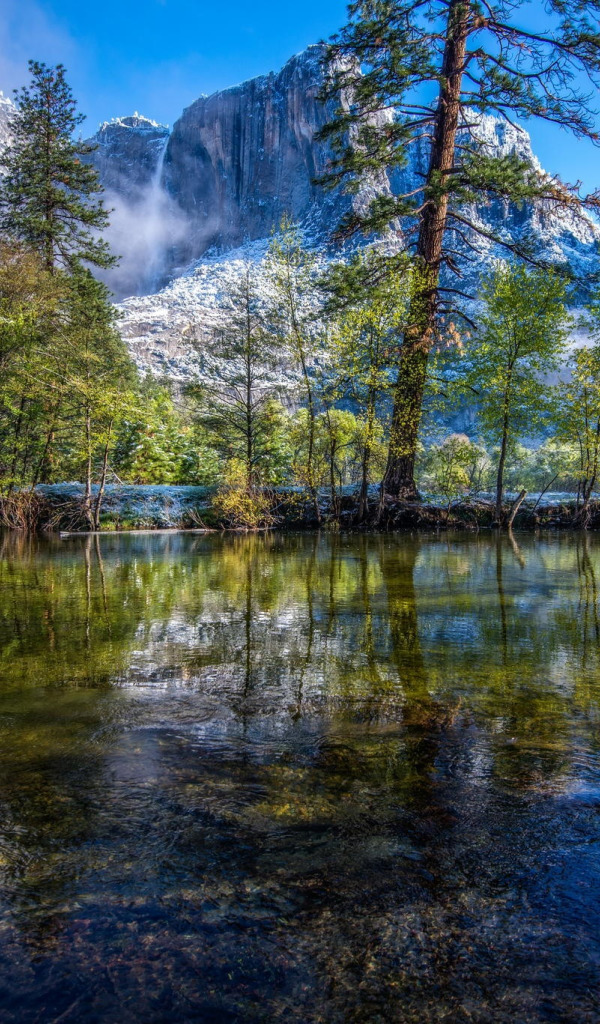 Назад к обои снег, деревья, горы, отражение, река, Калифорния, USA, США