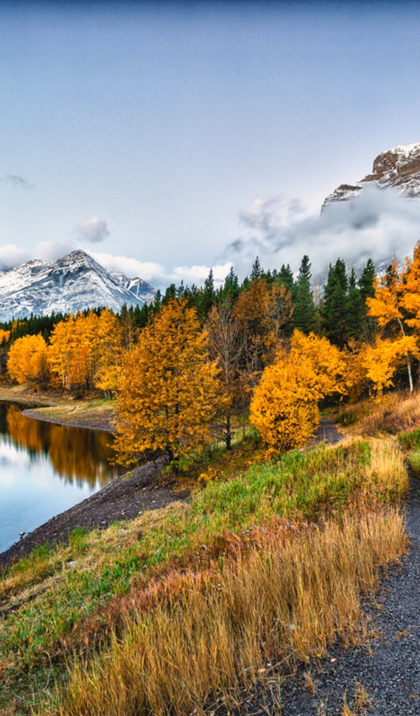Назад к обои дорога, осень, лес, небо, листья, вода, облака, снег