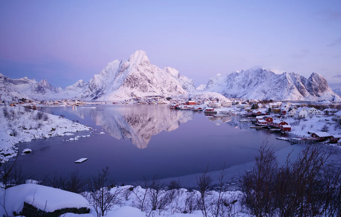 Снег, бухта, норвегия, поселок обои на телефон (фото, картинки)