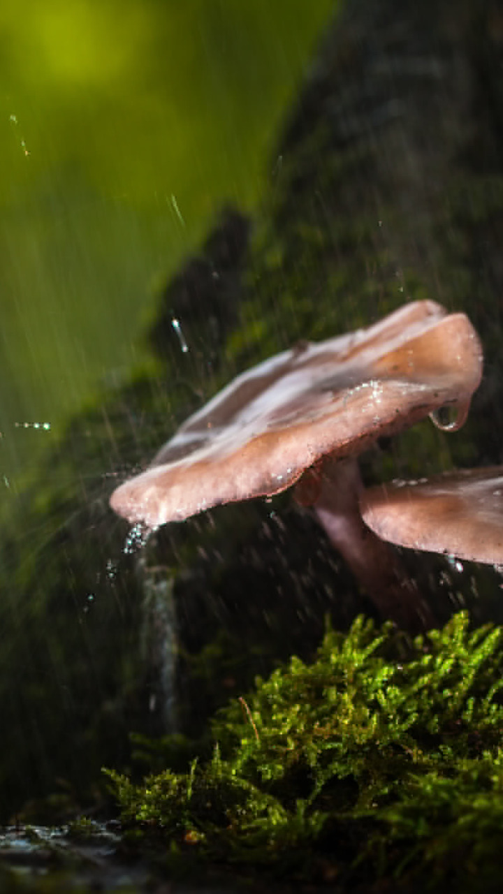 Назад к обои осень, лес, капли, макро, дождь, грибы