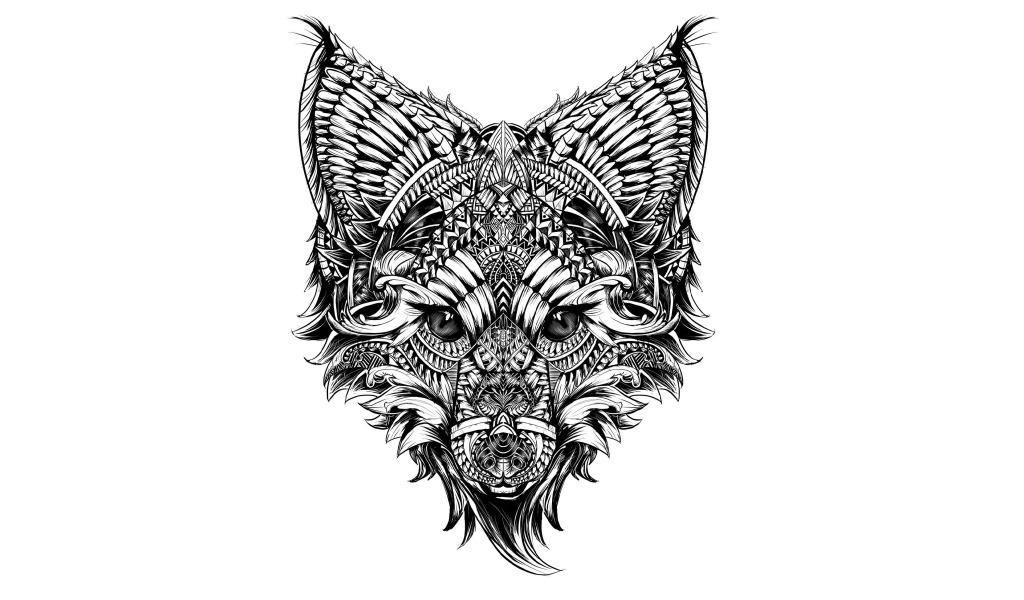 морда, животное, лиса, белый фон, зверь, орнамент, fox, animal