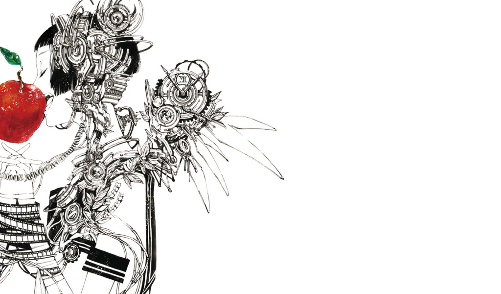 Назад к обои девушка, яблоки, механизм, крылья, пленка