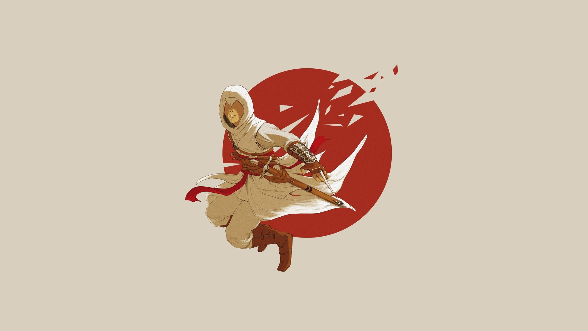 Назад к обои прыжок, игра, минимализм, капюшон, альтаир, убийца, Ubisoft, клинок