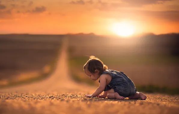 Дорога, простор, девочка, боке обои на телефон (фото, картинки)