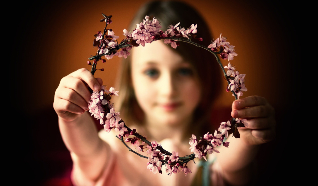 девочка, венок, боке