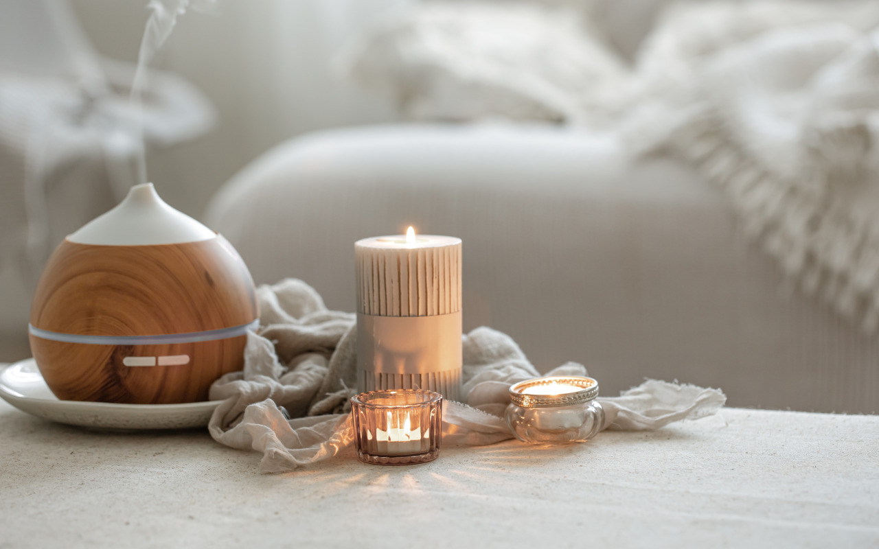 стол, диван, релакс, полотенце, свечи, ткань, дымка, подсвечник