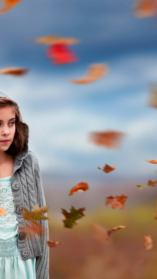 Назад к обои осень, листья, ветер, девочка, Flurry