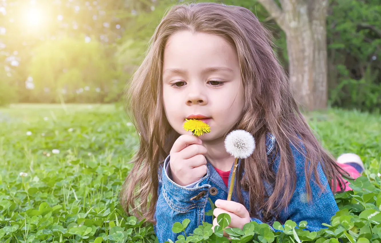 Природа, одуванчик, девочка, лежит, русая обои на телефон (фото, картинки)