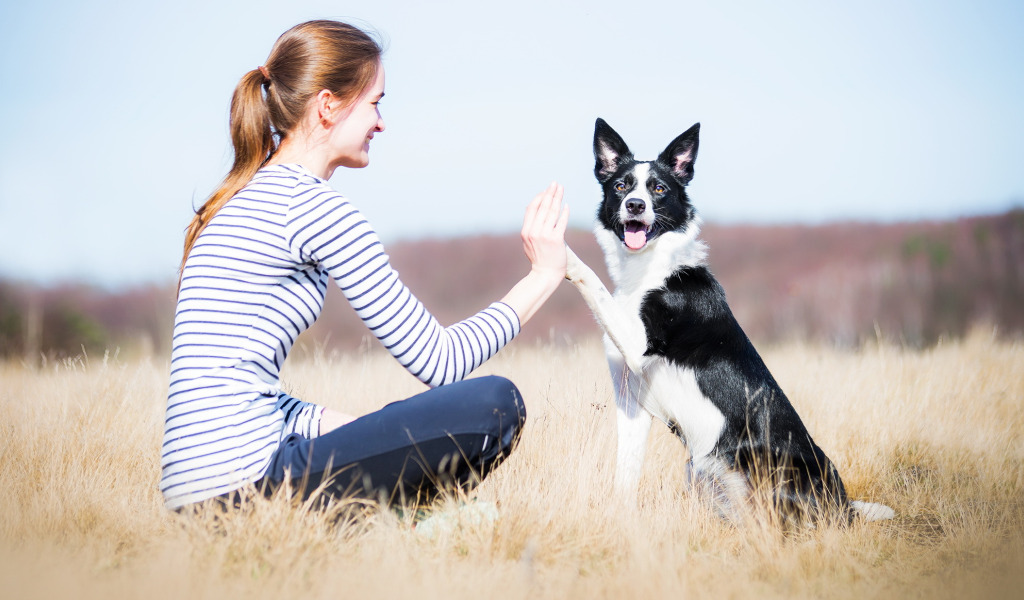 Назад к обои девушка, природа, собака
