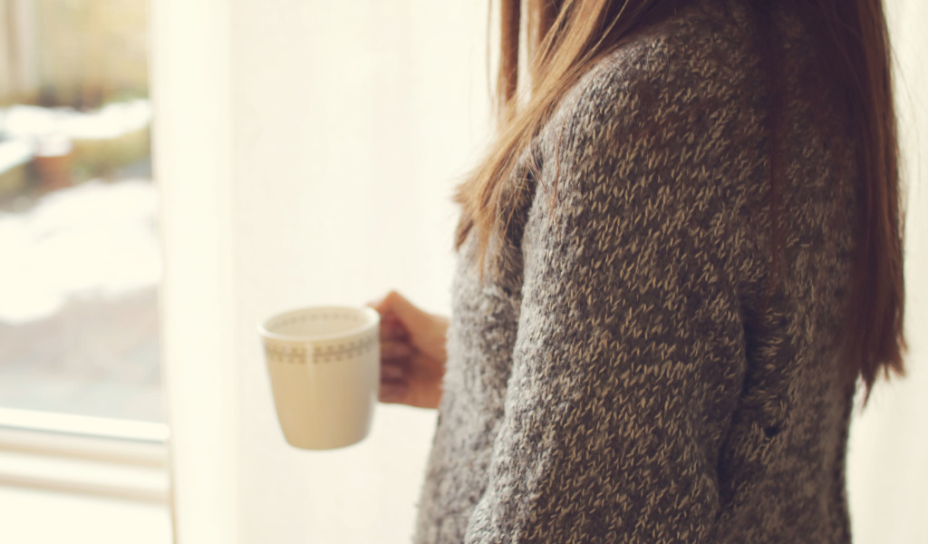 Назад к обои девушка, кружка, чашка, свитер