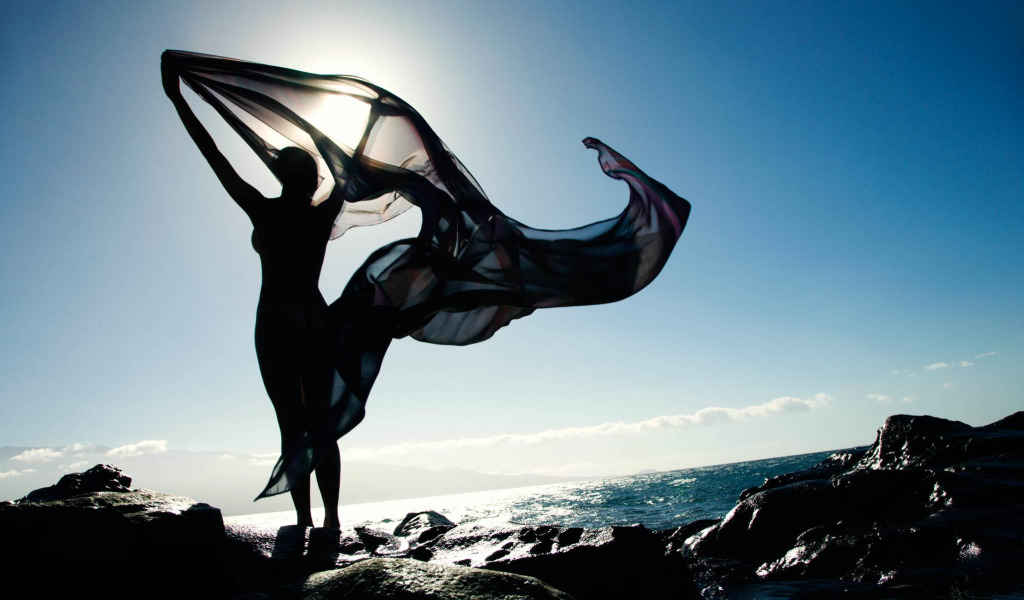 Назад к обои девушка, ветер, силуэт