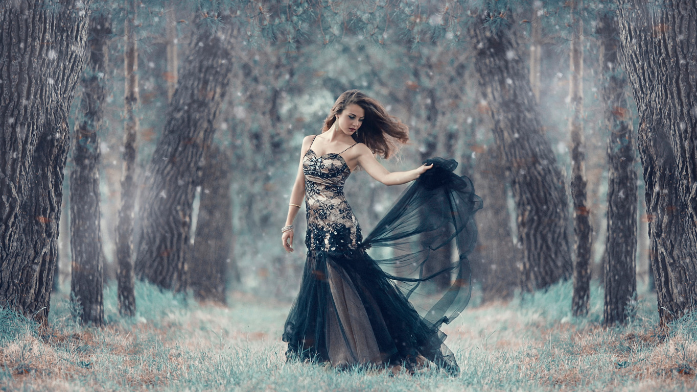 Назад к обои лес, девушка, платье, Alessandro Di Cicco, A cold forest