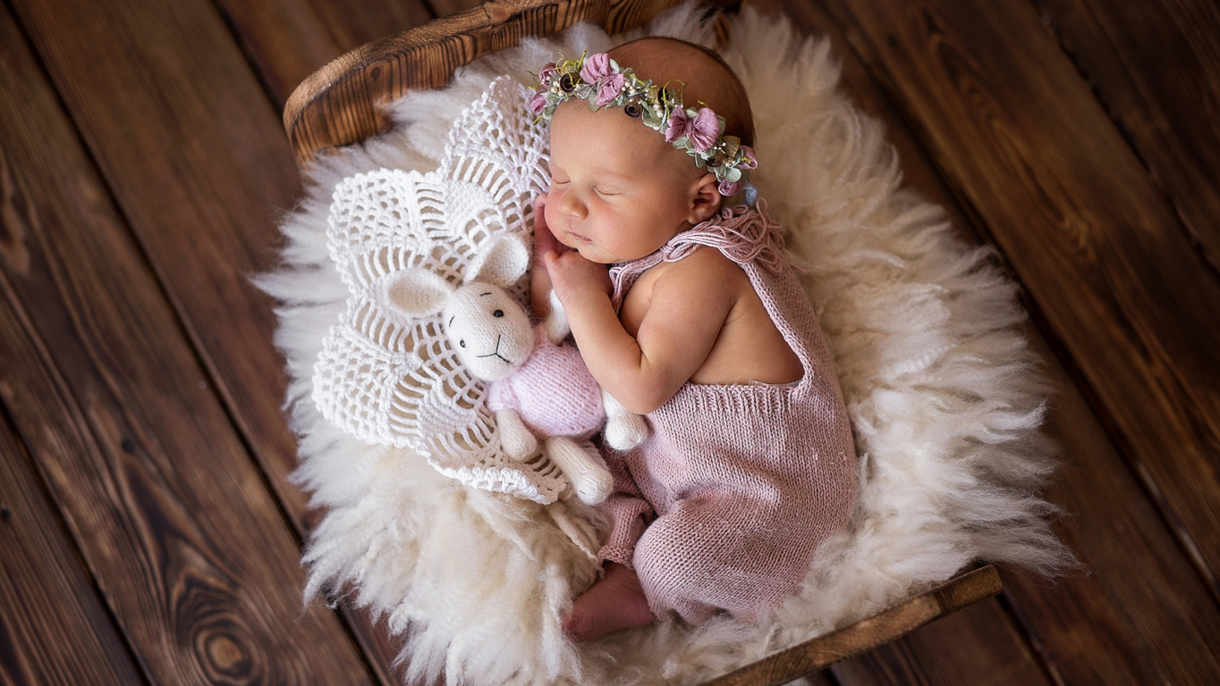 Назад к обои игрушка, доски, сон, кролик, спит, девочка, венок, младенец