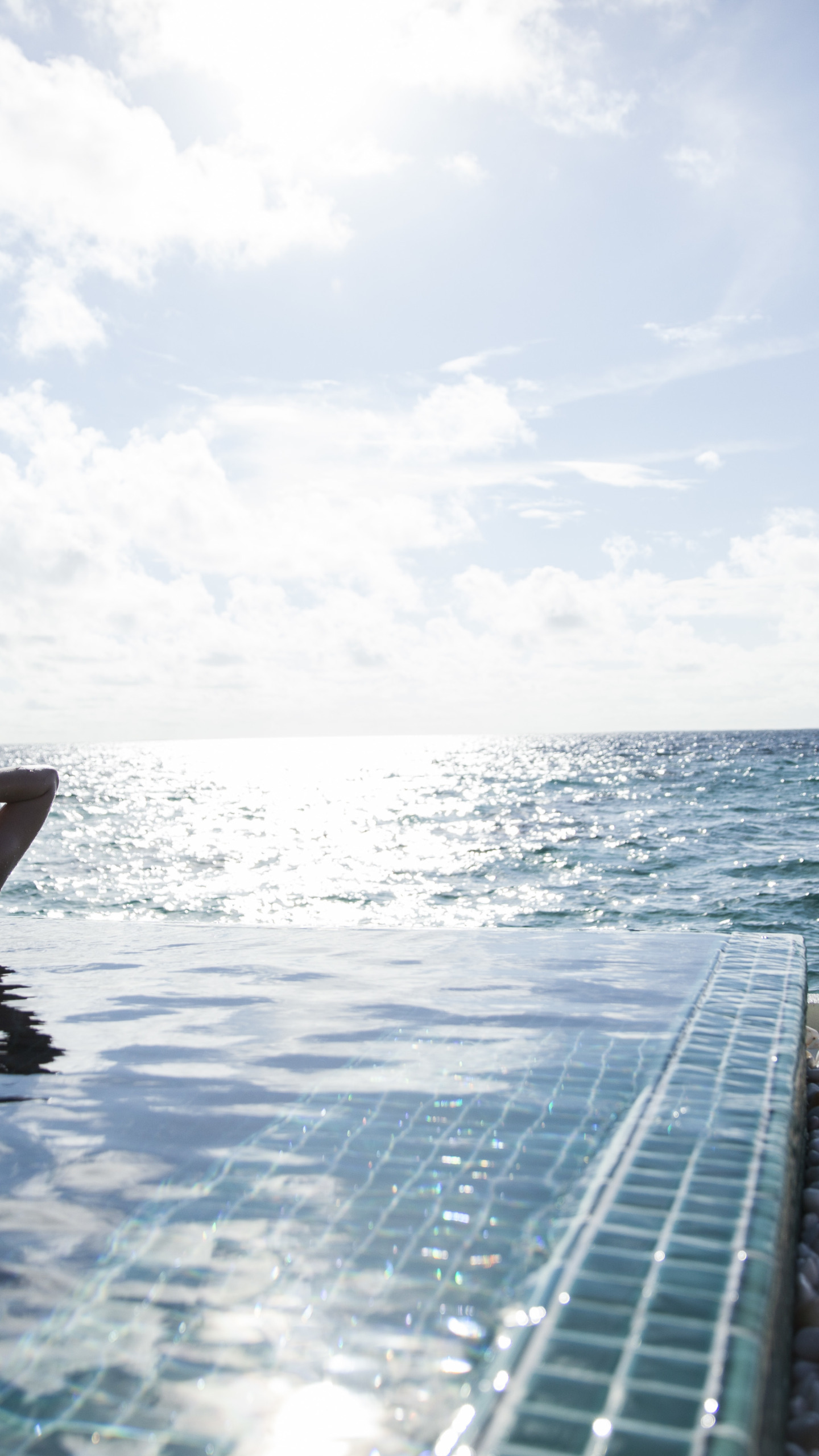 Назад к обои девушка, солнце, океан, вид, бассейн, отблеск