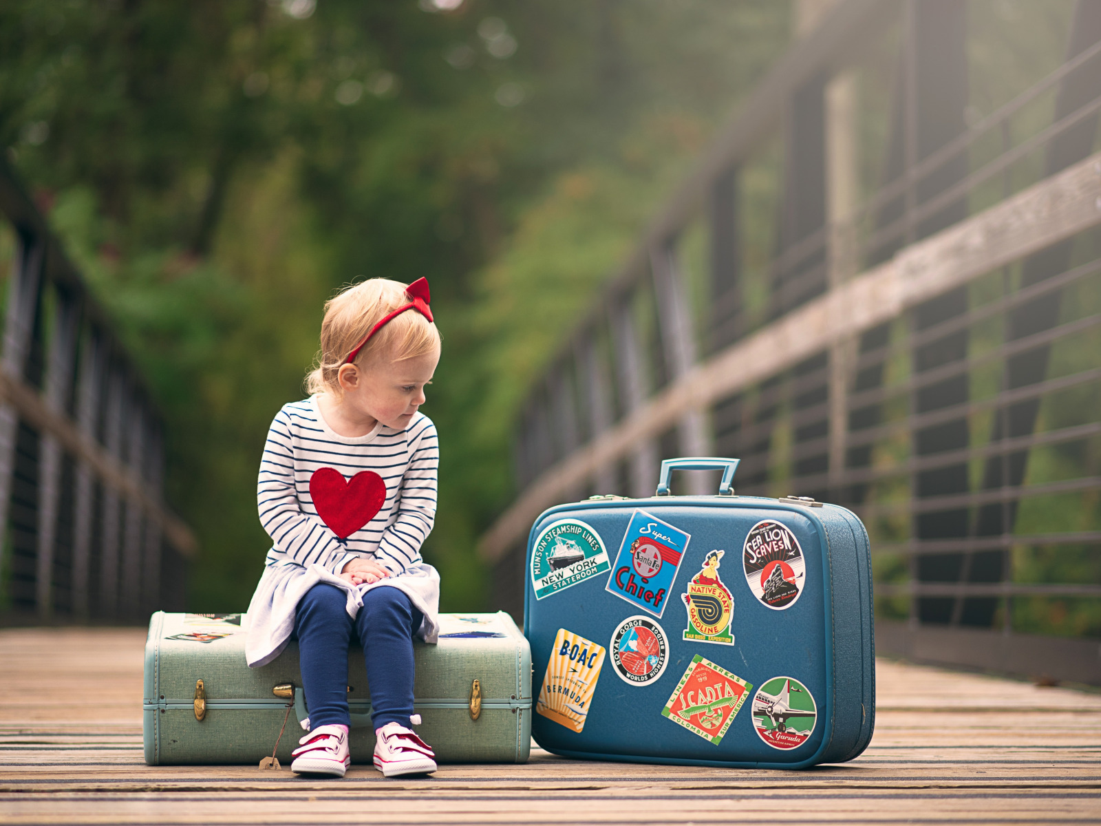 Назад к обои девочка, чемодан, сидит