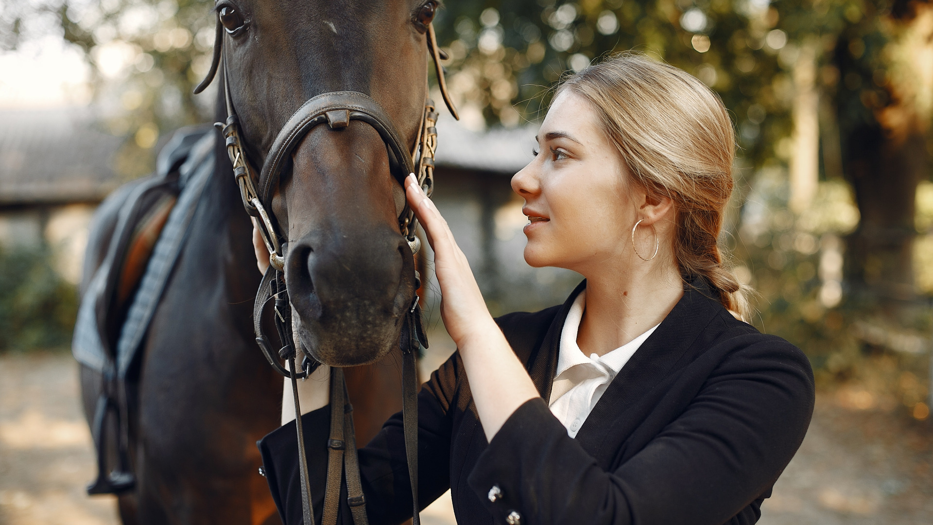 Назад к обои взгляд, девушка, поза, друг, конь, лошадь, портрет, блондинка
