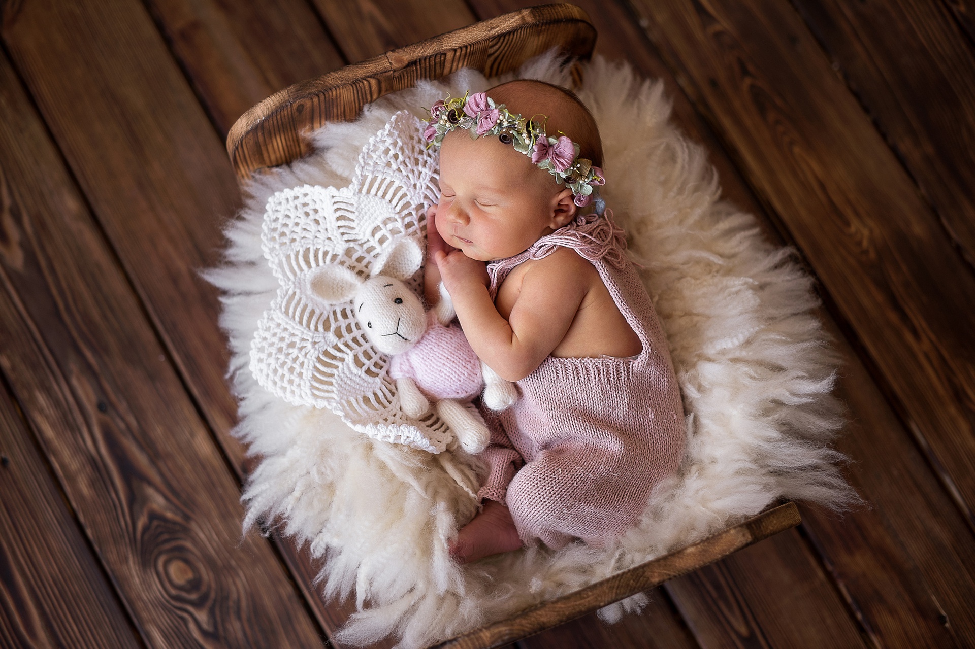 игрушка, доски, сон, кролик, спит, девочка, венок, младенец