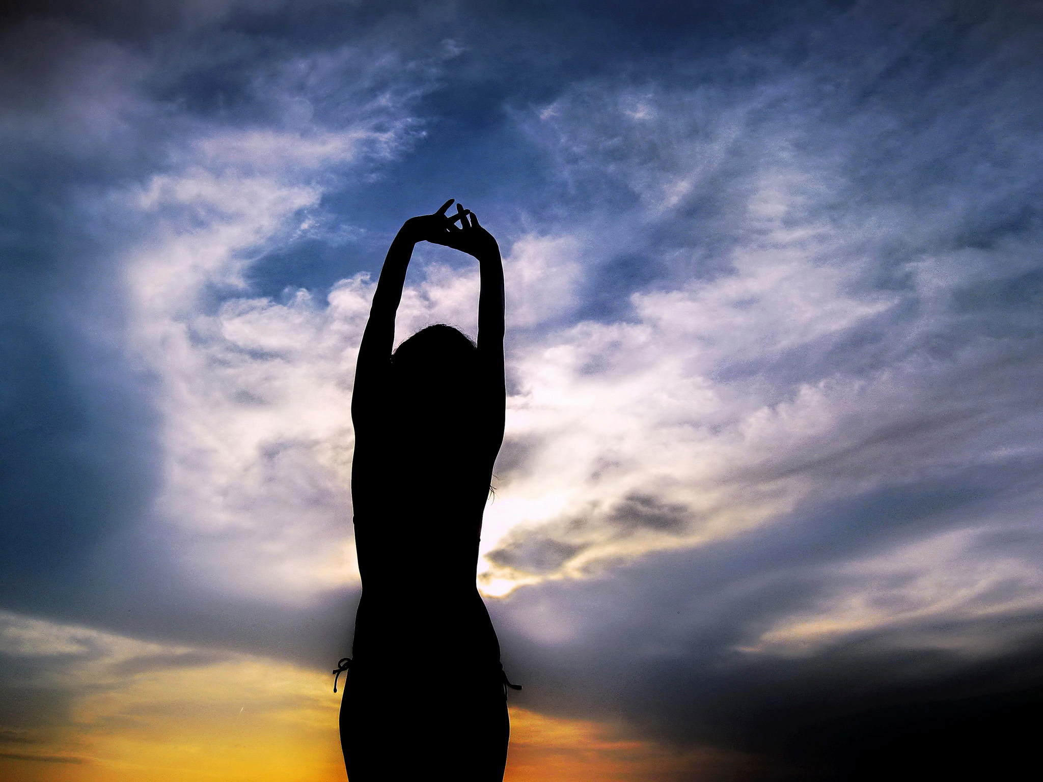 небо, девушка, силуэт