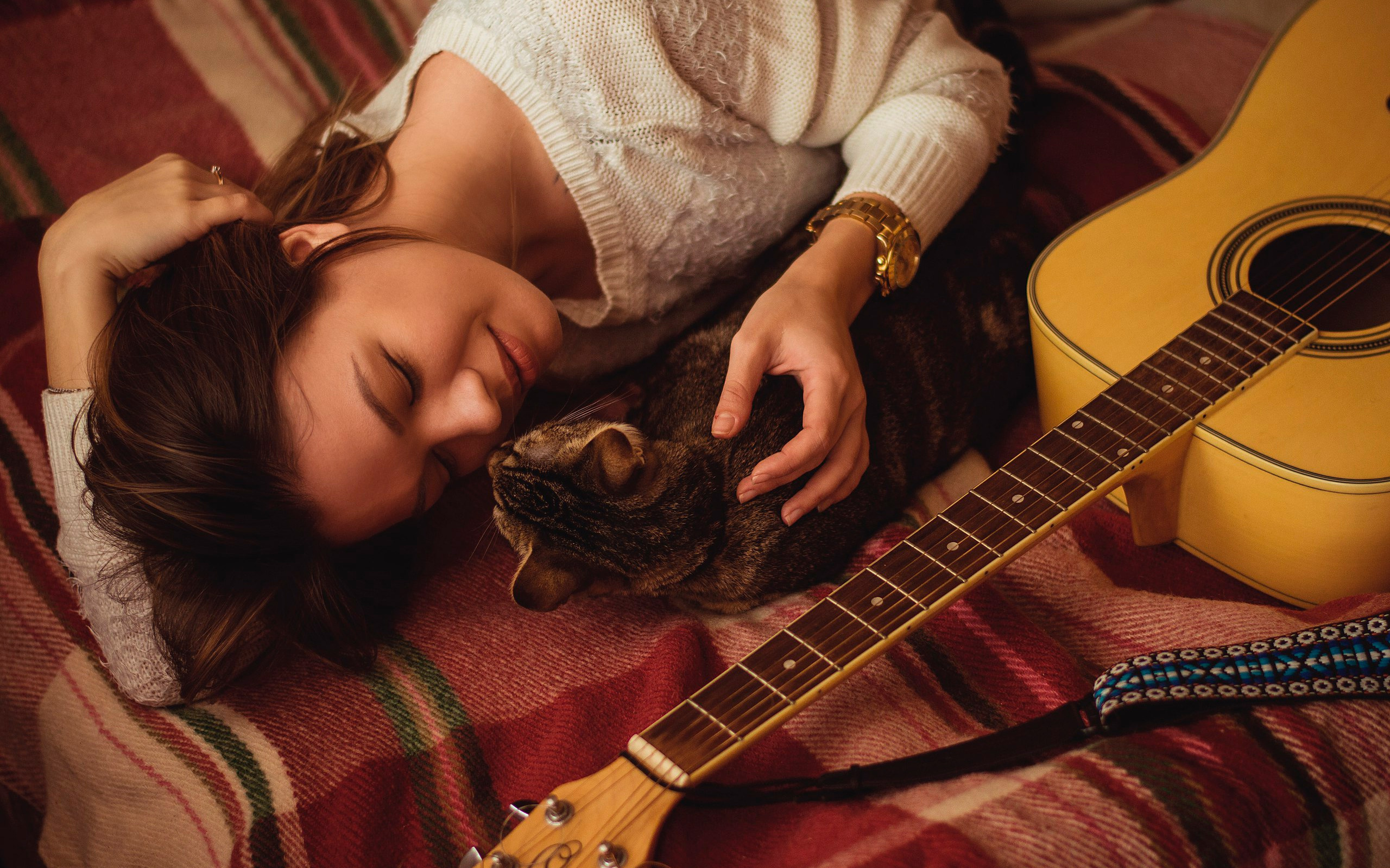 Назад к обои кошка, девушка, гитара