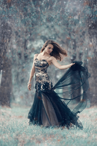 Назад к обои лес, девушка, платье, Alessandro Di Cicco, A cold forest