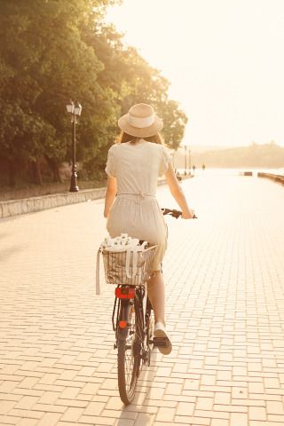 Назад к обои девушка, велосипед, город