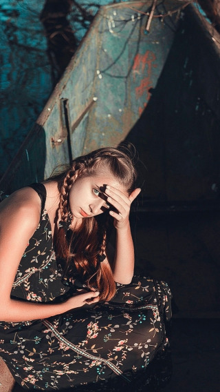 Назад к обои девушка, солнце, косички, прелесть, в лодке