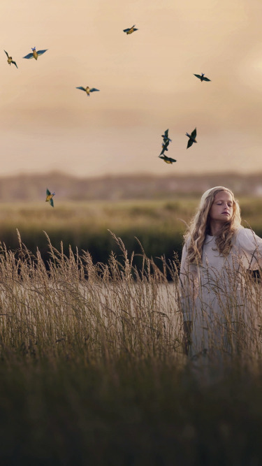 поле, вечер, девочка