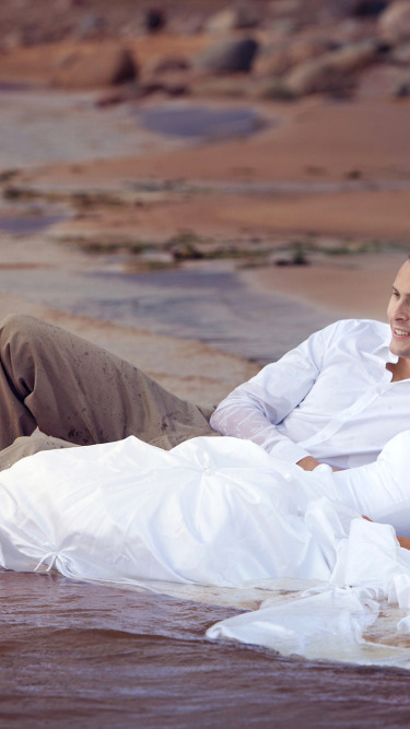 Назад к обои море, пляж, бокал, бутылка, босиком, пара, лежит, шампанское