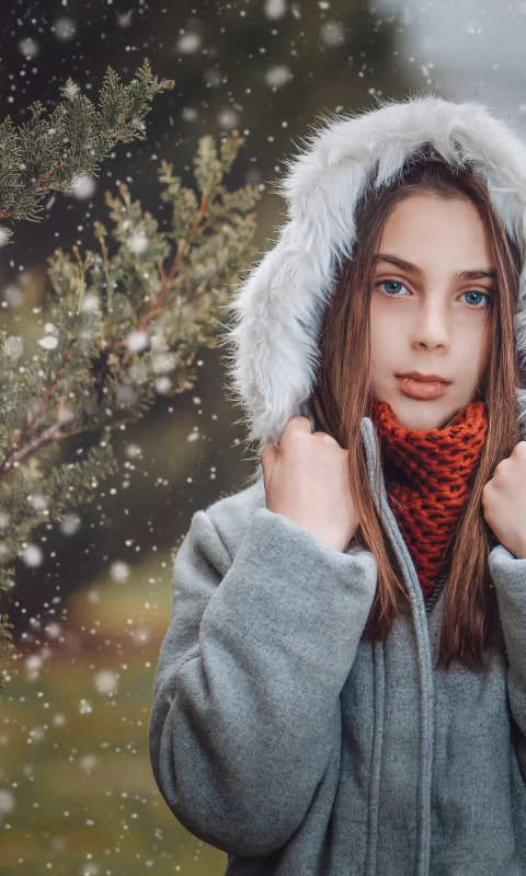 Назад к обои снег, портрет, капюшон, девочка, мех, Giorgi Solomnishvili