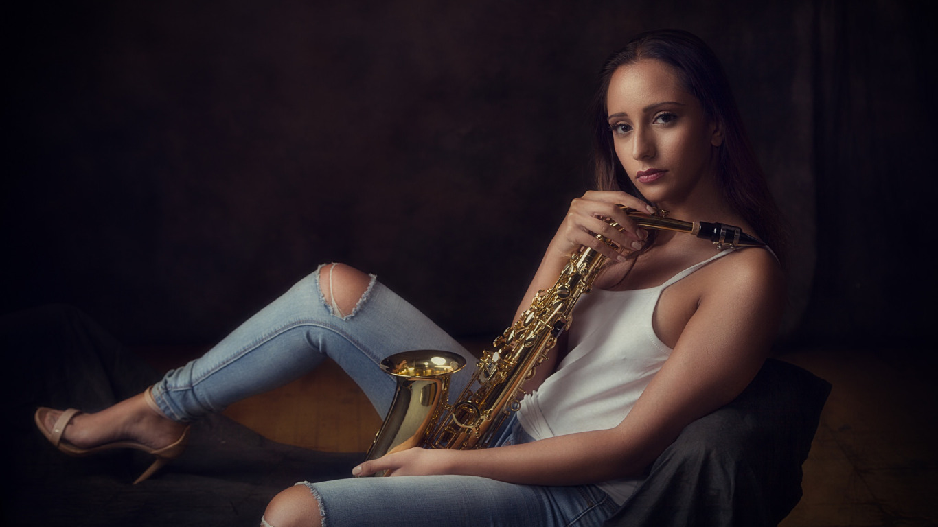 Назад к обои девушка, музыка, саксофон