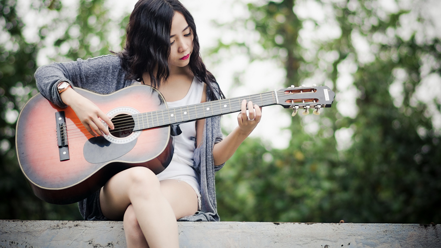 Назад к обои девушка, музыка, гитара