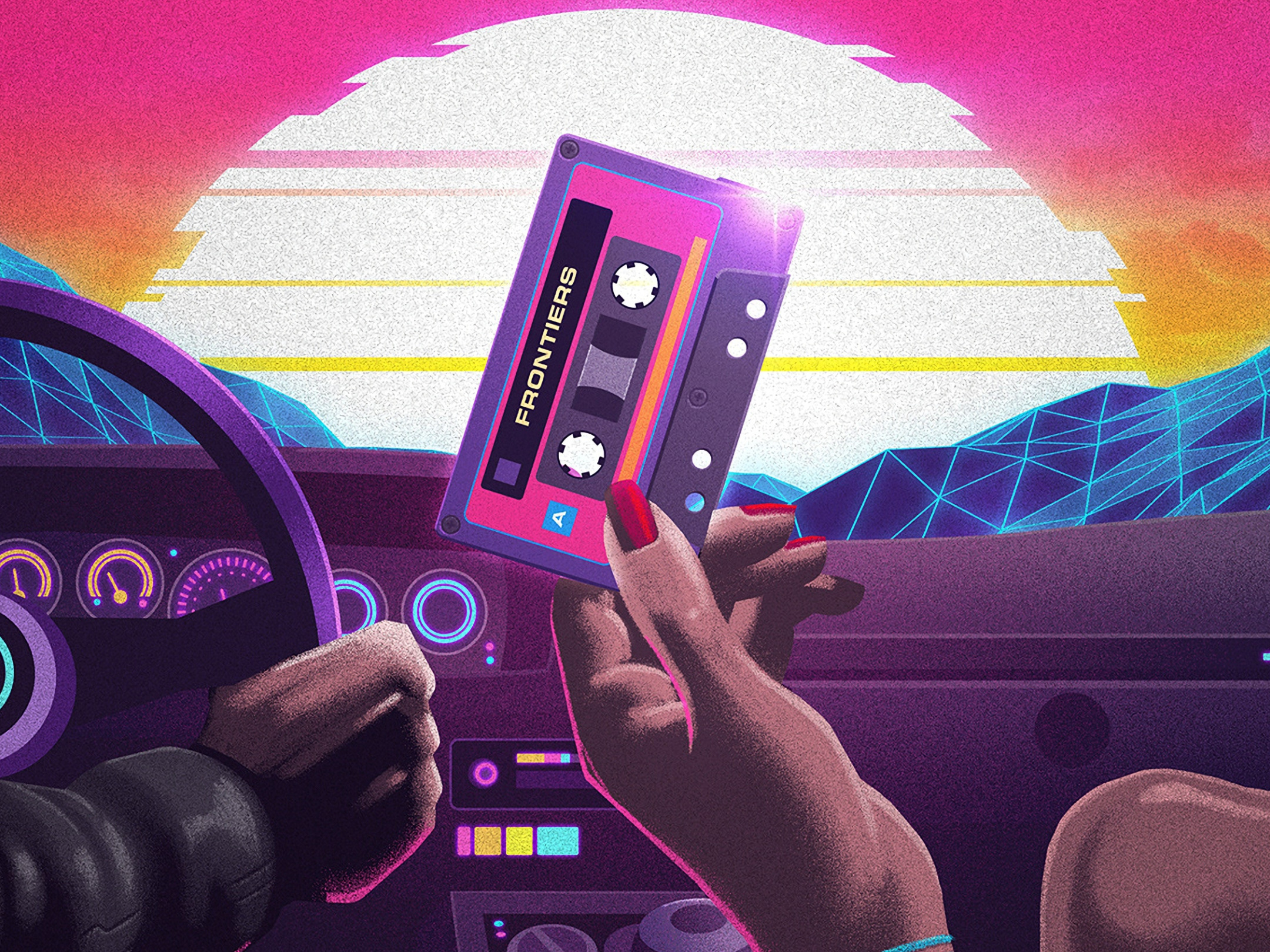 машина, авто, солнце, звезды, закат, стиль, музыка, рендеринг