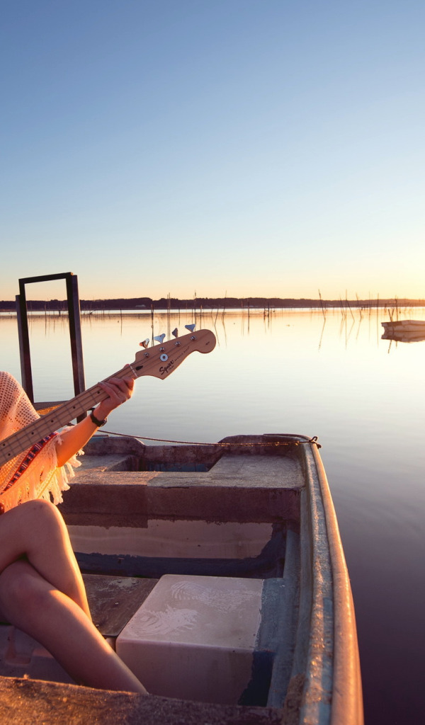 Назад к обои девушка, озеро, музыка, лодка, гитара