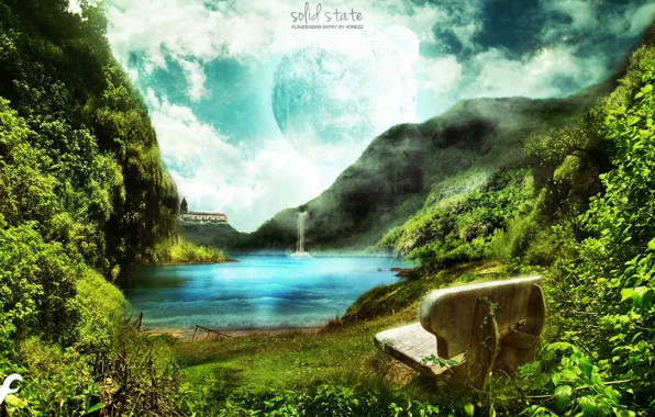 Вода, скамейка, природа, река обои на телефон (фото, картинки)
