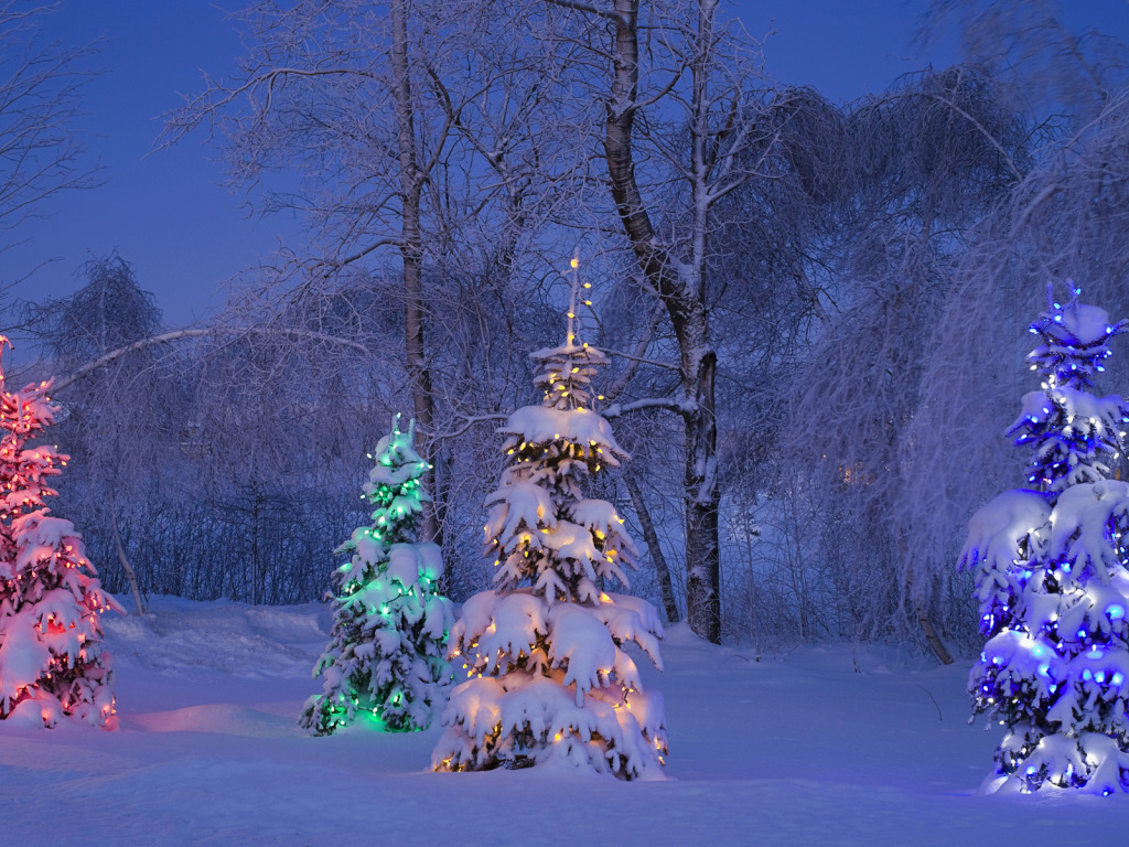 Назад к обои зима, иней, снег, деревья, синий, желтый, красный, огни