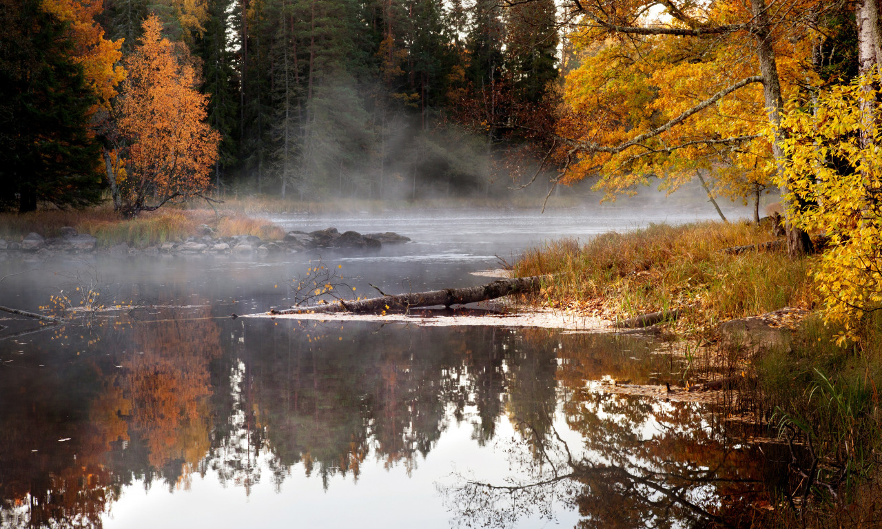 Назад к обои осень, лес, деревья, туман, пруд, отражение, берег, бревно