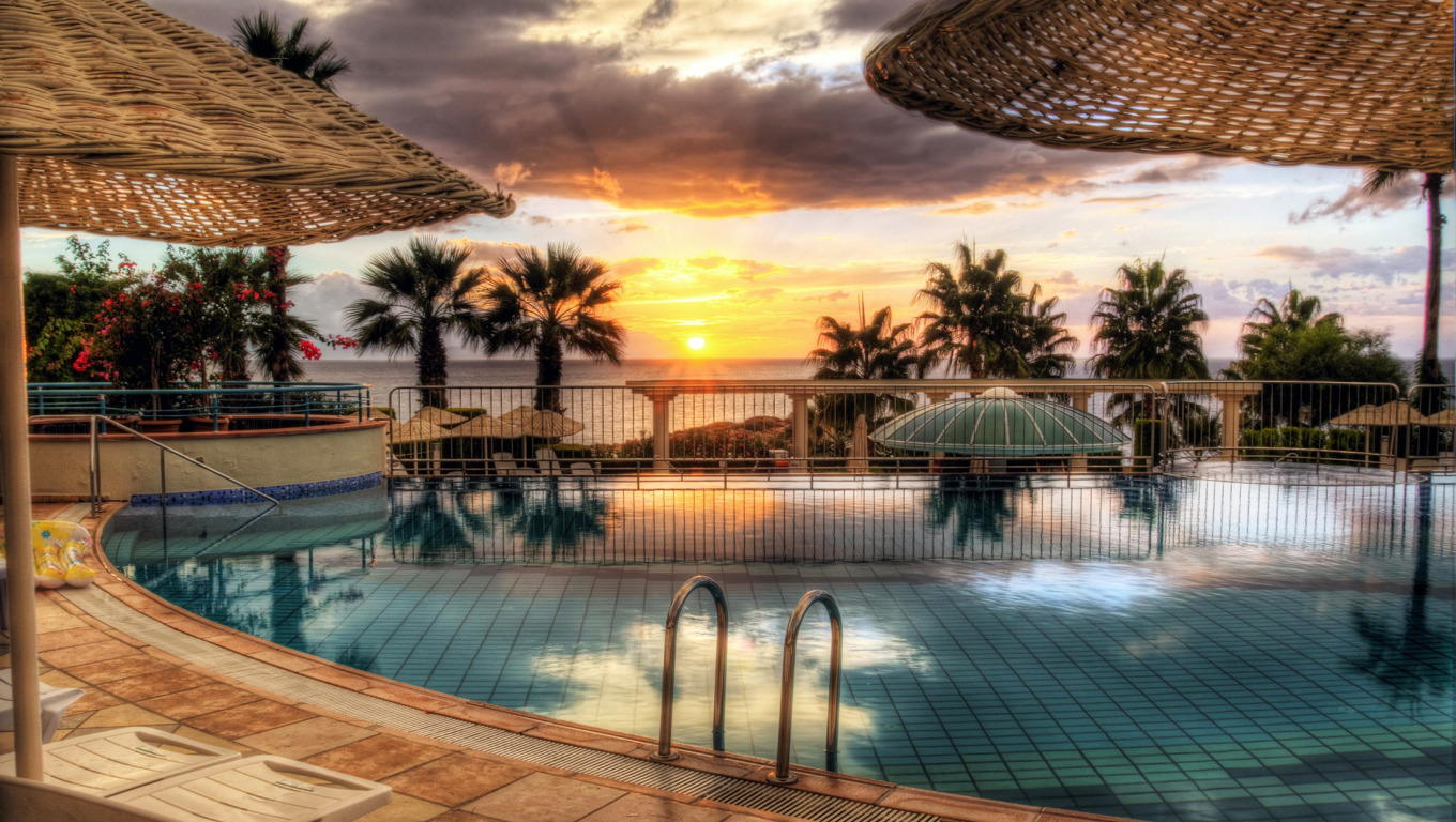 море, небо, закат, пальмы, HDR, бассейн, sky, sea