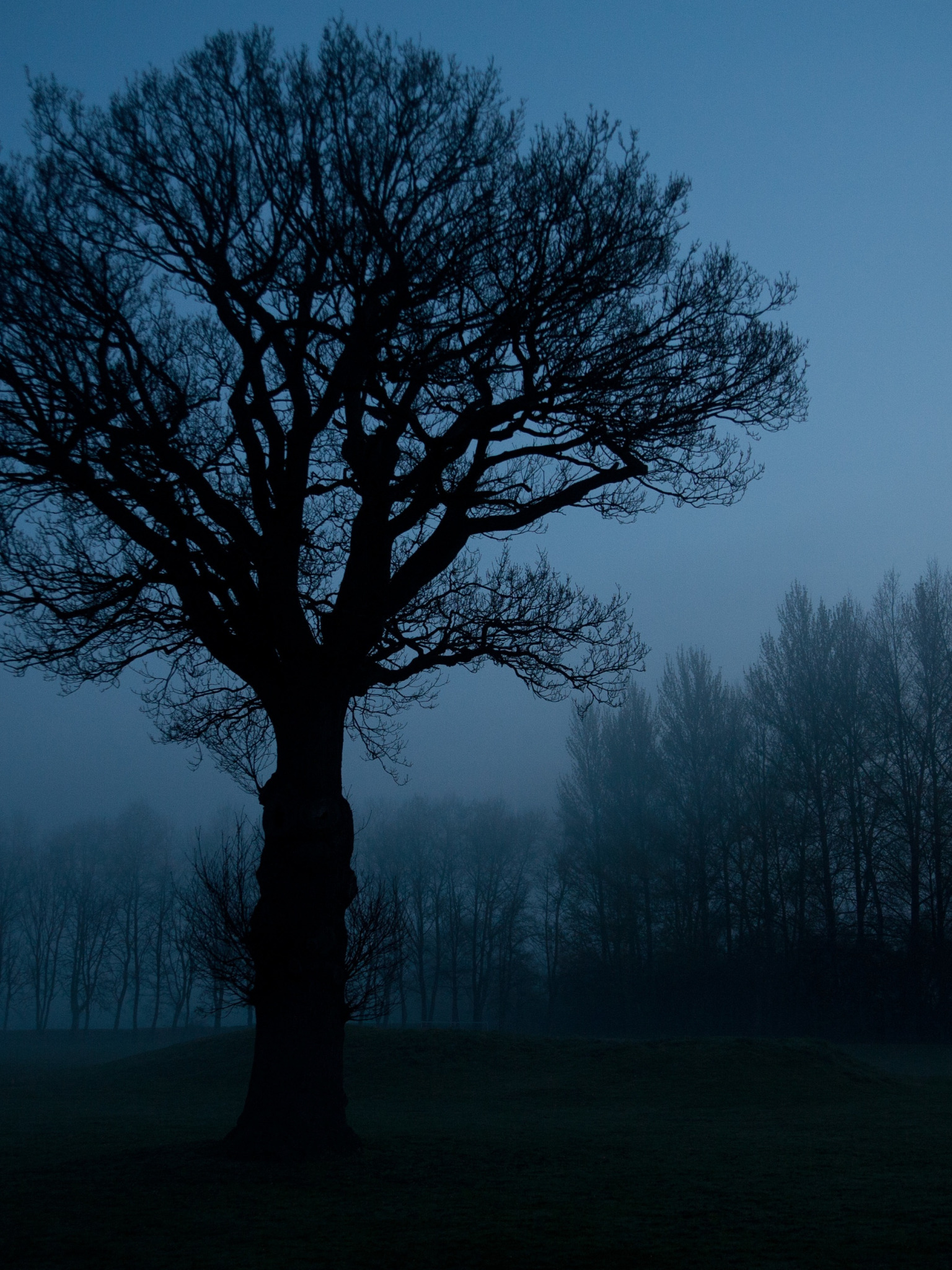 небо, деревья, ночь, природа, силуэт, мрачно