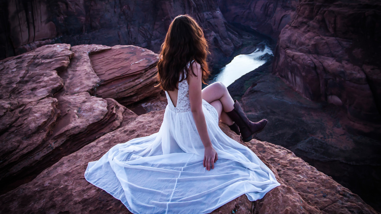 Назад к обои девушка, река, вид, высота, ущелье, River Throne