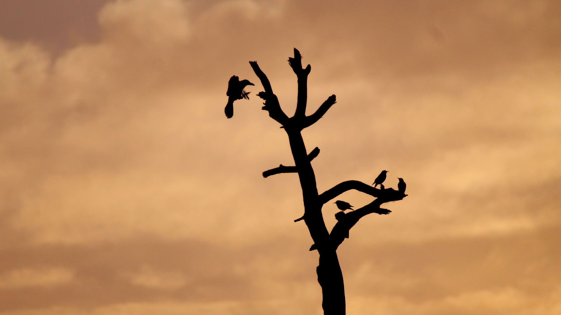 Назад к обои dark, nature, cloud, birds, dead tree