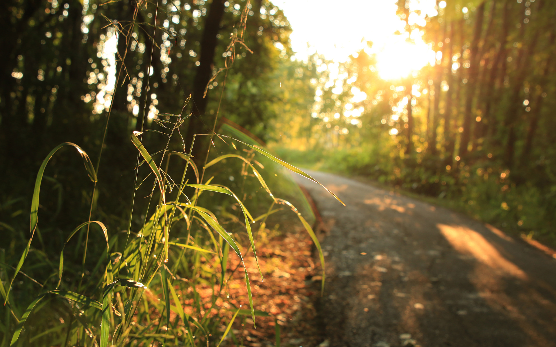 Назад к обои grass, road, trees, sunlight