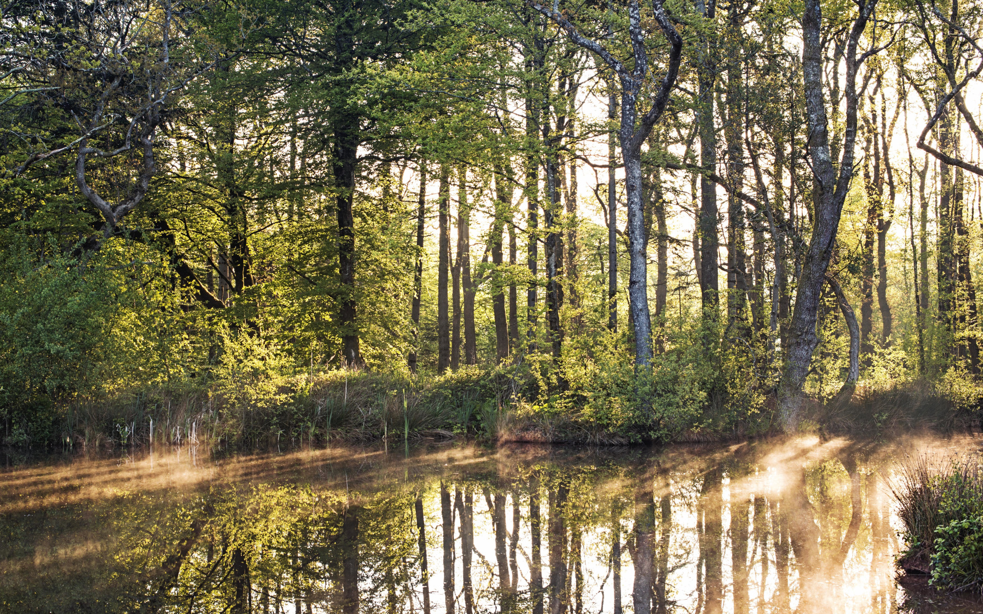 Назад к обои солнце, свет, деревья, река, берег, листва, кустарник