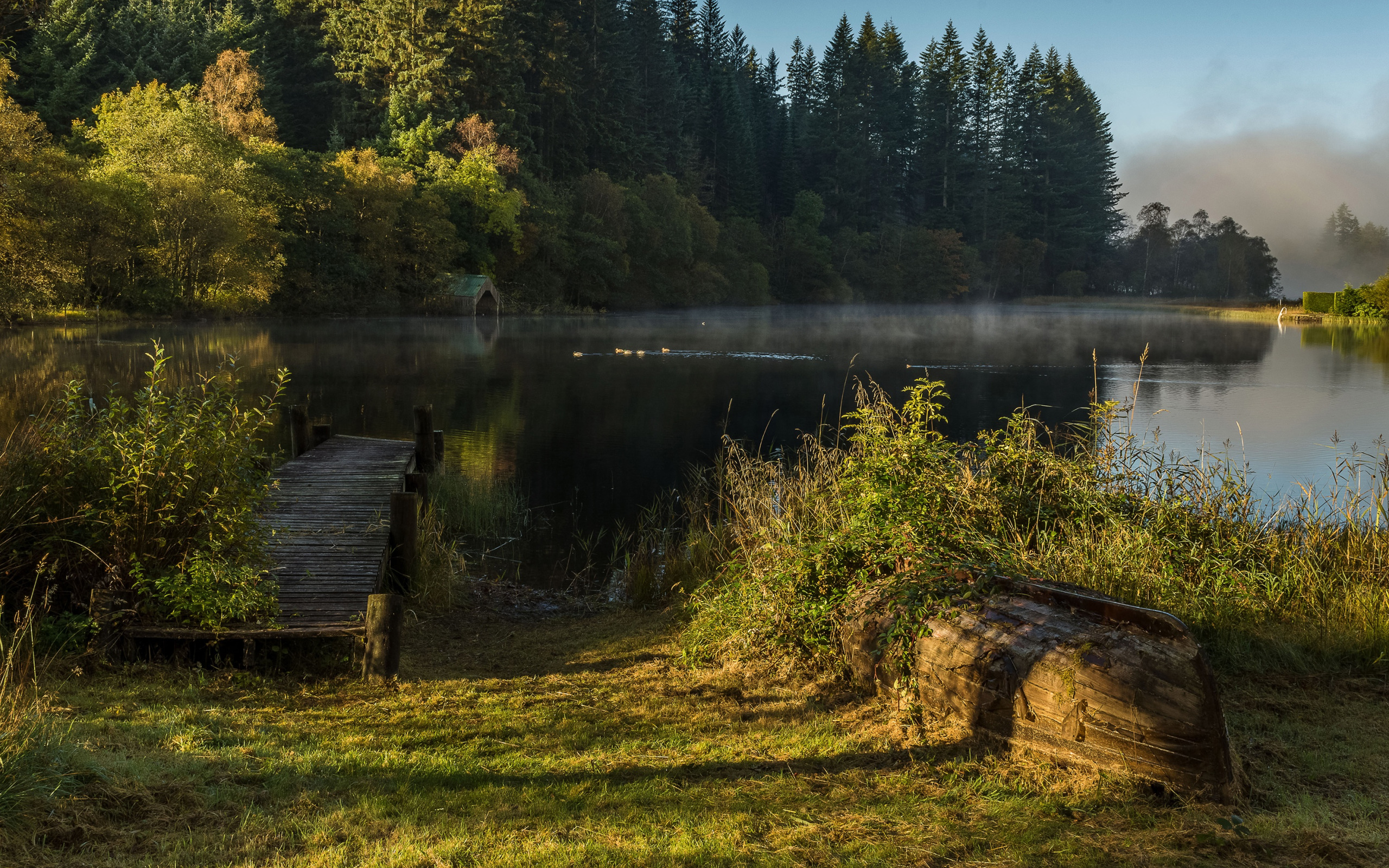 Назад к обои зелень, лес, трава, солнце, деревья, туман, озеро, лодка