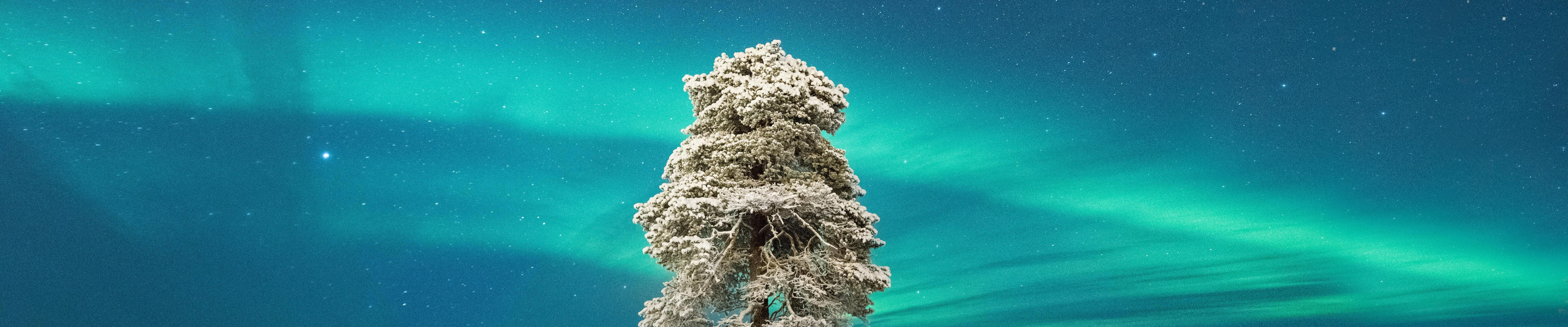 деревья, одинокое дерево, Финляндия, Finland, Lapland, Лапландия, Lone Tree, Скандинавское сияние