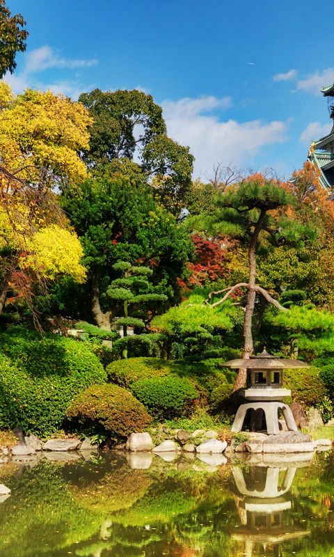 Назад к обои зелень, небо, солнце, деревья, пруд, парк, камни, замок