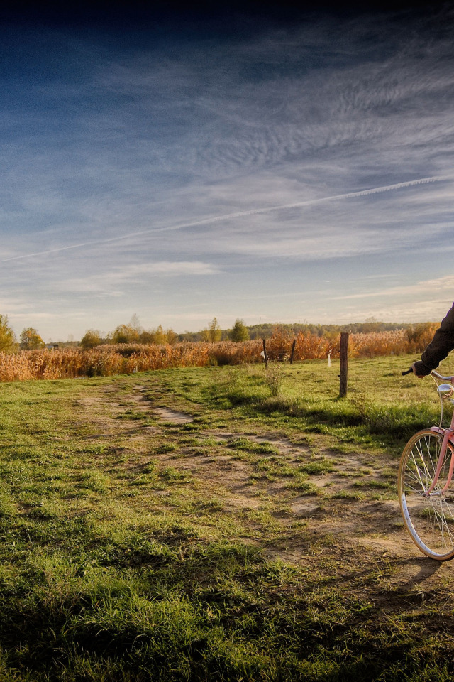 Назад к обои поле, девушка, деревья, велосипед, ограда