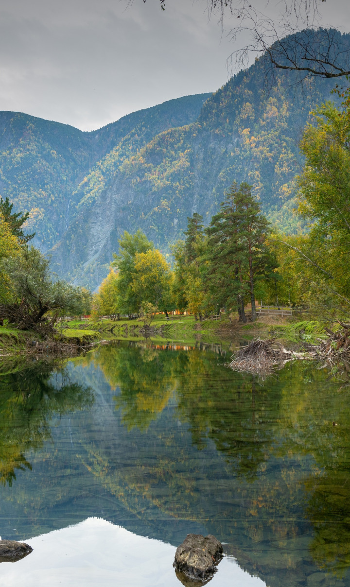 Назад к обои деревья, горы, река, красота, отражение в воде, Диков Рустем