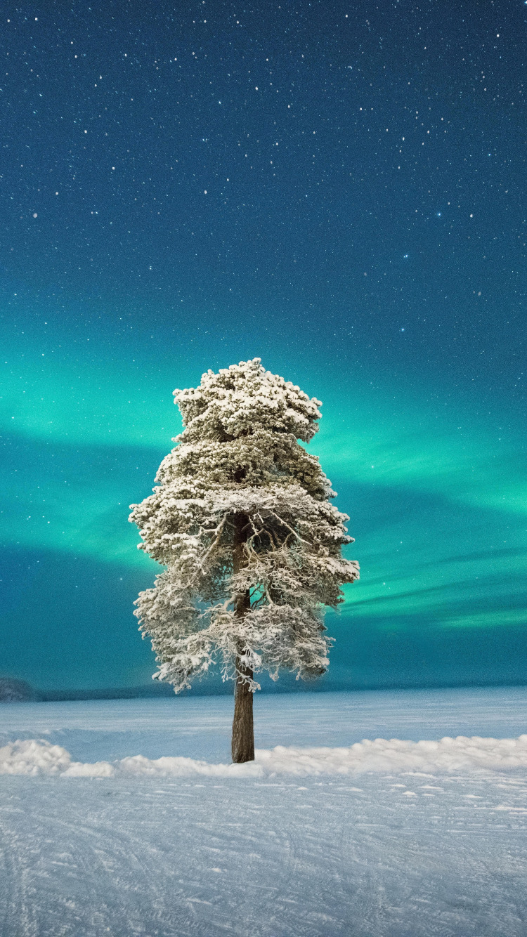 деревья, одинокое дерево, Финляндия, Finland, Lapland, Лапландия, Lone Tree, Скандинавское сияние