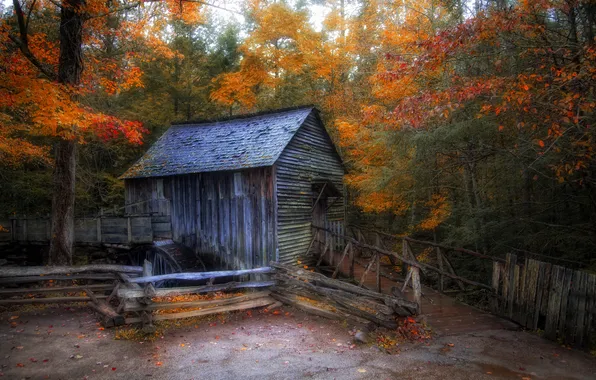 Осень, лес, водопад, мельница, babcock state park, западная вирджиния обои на телефон (фото, картинки)