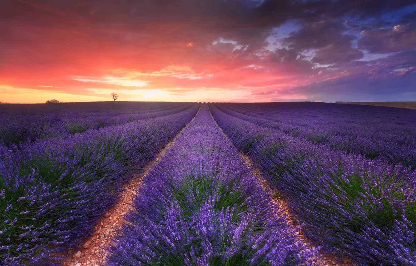 Поле, небо, облака, природа, вечер, лаванда обои на телефон (фото, картинки)